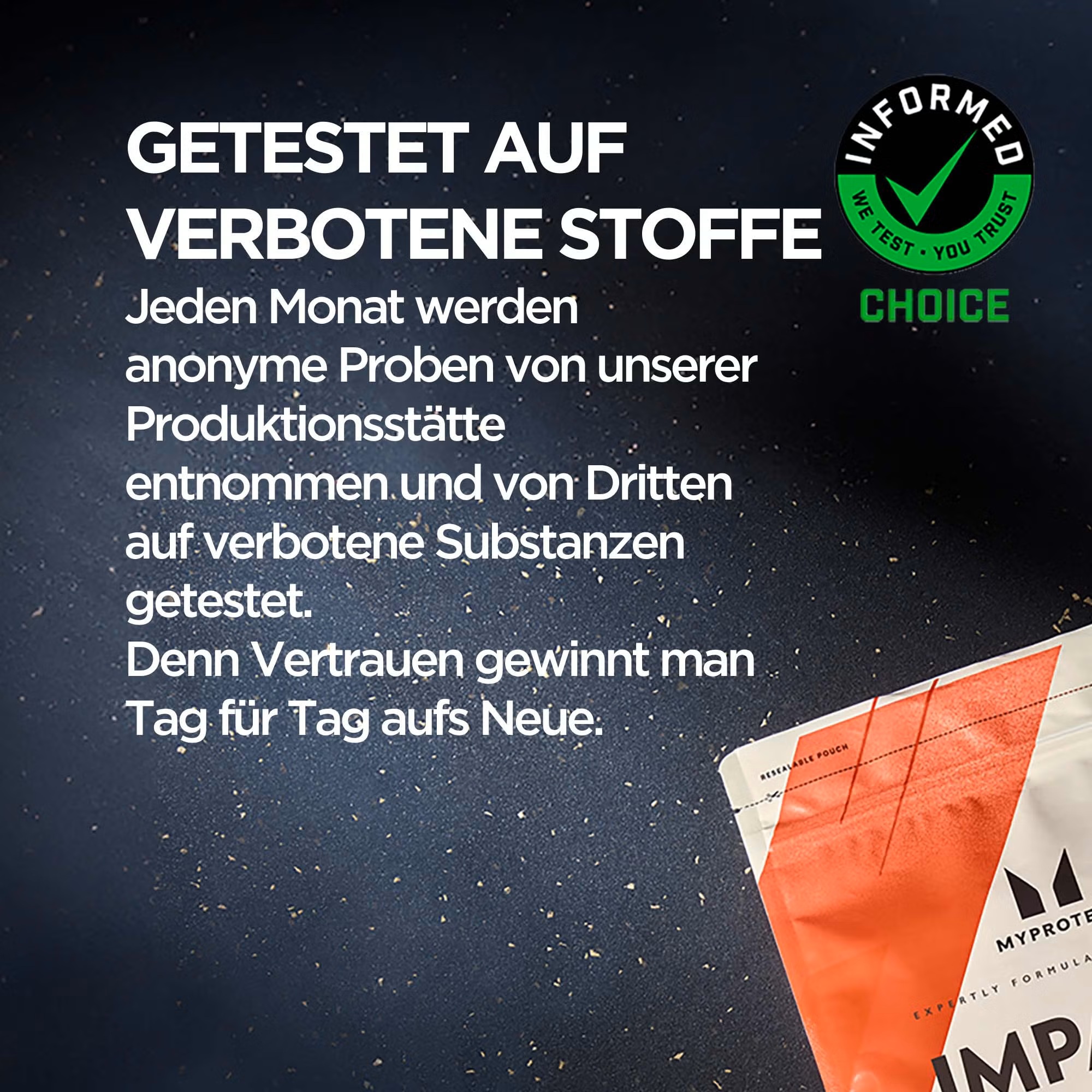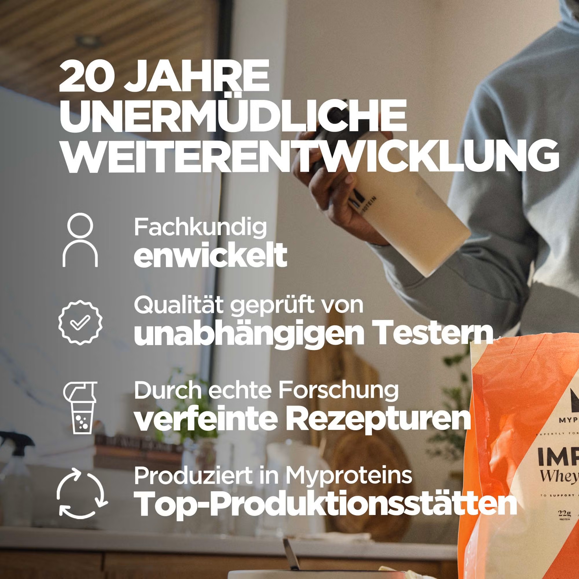 Das Molkeprotein mit dem besten Preis-Leistungs-Verhältnis in Europa*! Impact Whey Protein™ wird ausschließlich aus Molke erster Klasse gewonnen und weist einen Proteingehalt von 82 % auf. Aufgrund seines unschlagbaren Preis-Leistungs-Verhältnisses und seines leckeren Geschmacks hat dieses Produkt alle Verkaufsrekorde gebrochen. Wir garantieren*, dass Sie in ganz Europa zu diesem Preis kein Protein dieser hochwertigen Qualität finden!